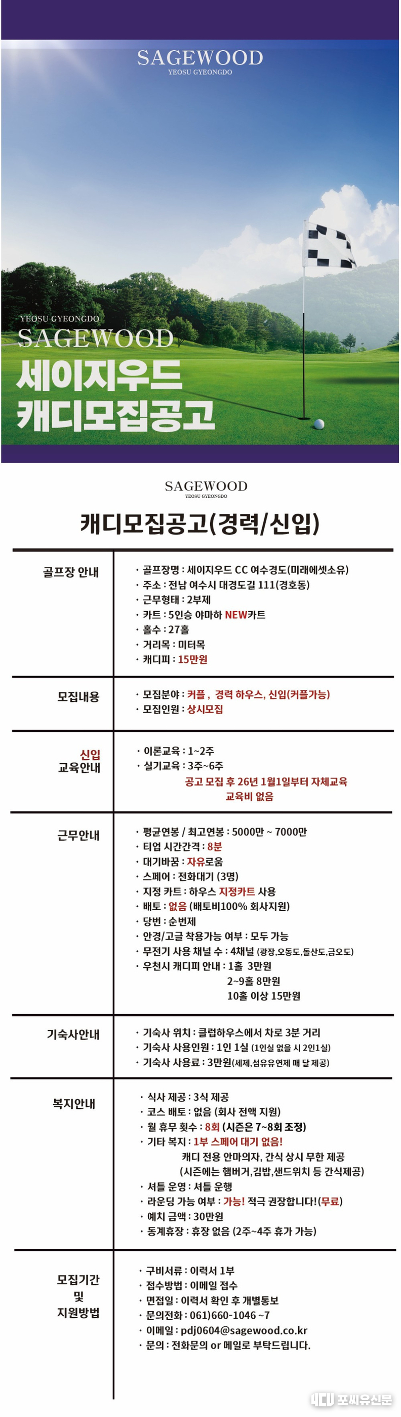 [캐디구인] 세이지우드CC 여수경도(경력/신입)