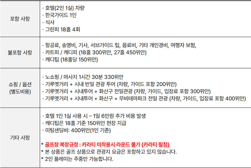 노옵션, 노쇼핑! 오직 캐디만을 위한 골프만을 위한 일정으로 만들었습니다.